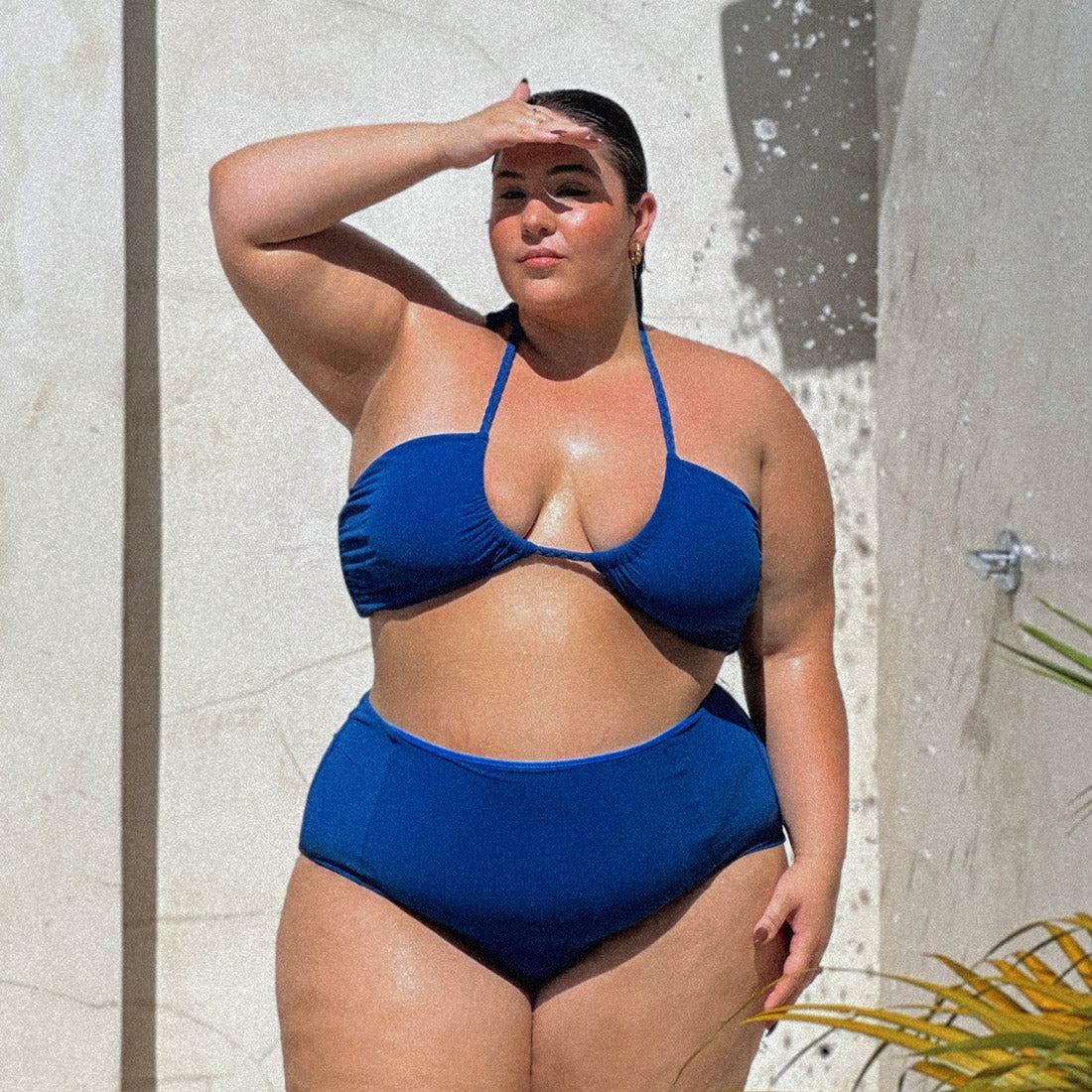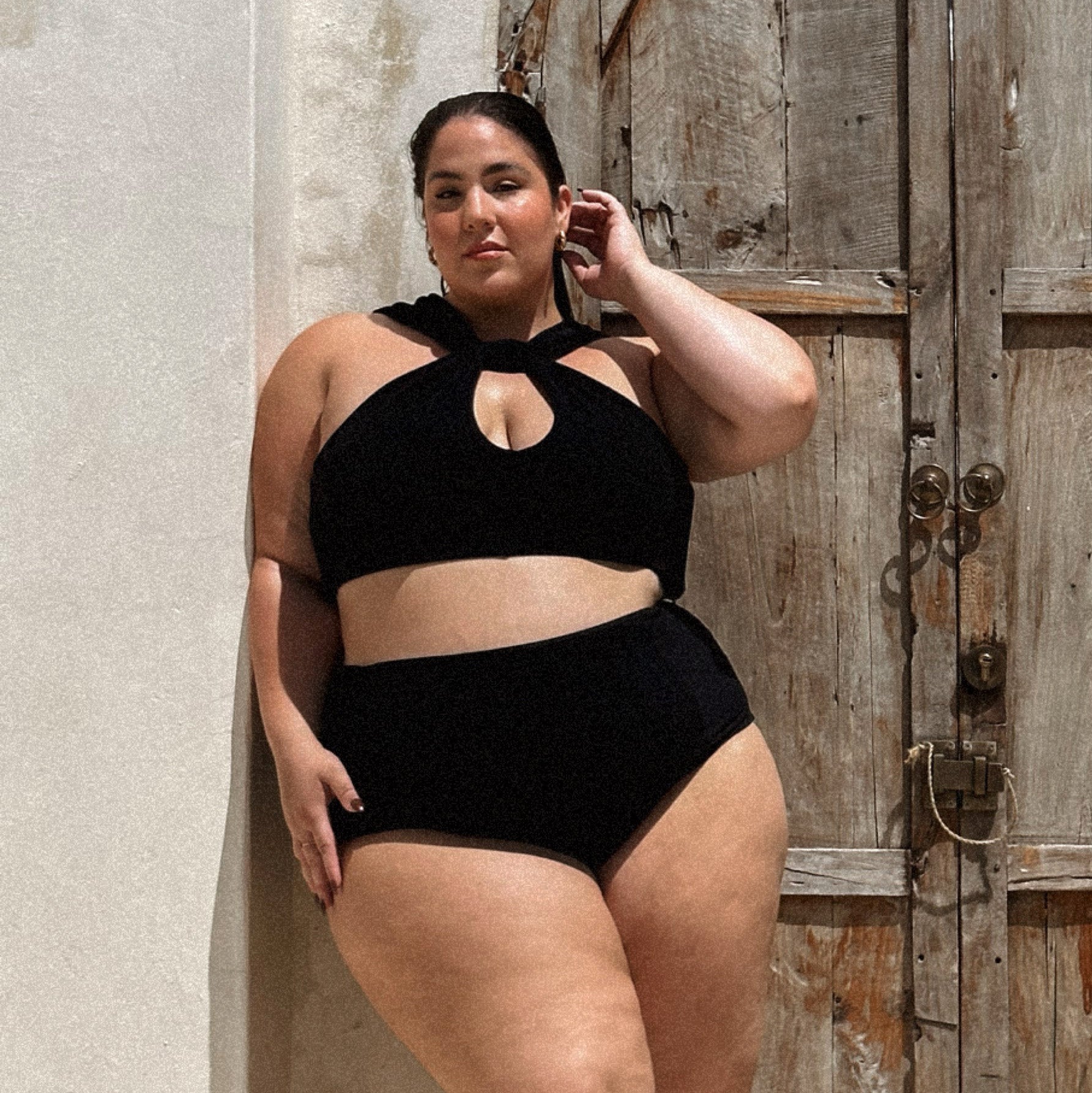 Maddy wears the Cross My Heart top & Born This Way bottoms in size US 18. Height 5'5".