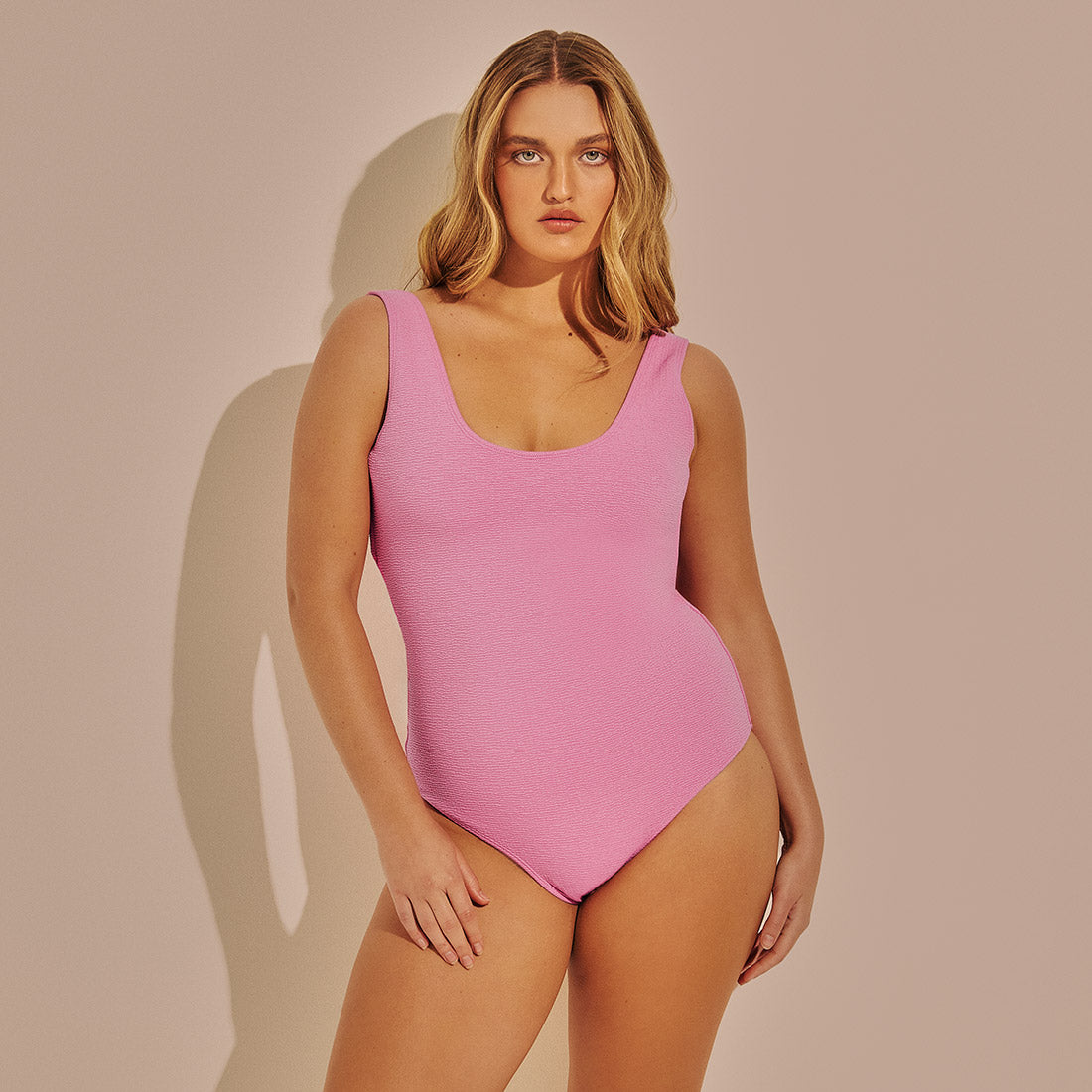 Tash wears the One of My Kind one-piece size US 10. Height 5'11".